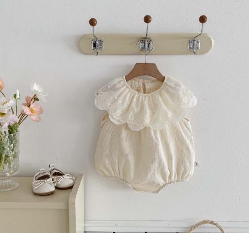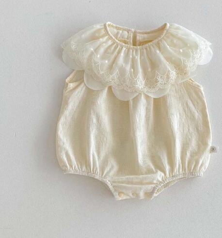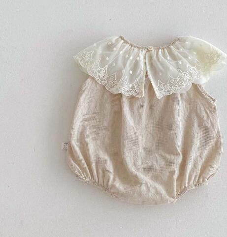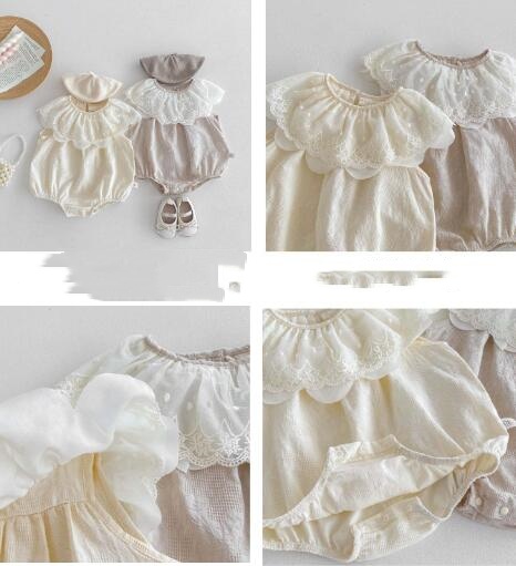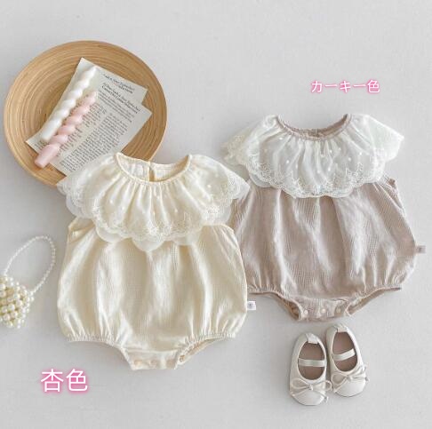 上品なレース襟が可愛い韓国風ベビードレス風ロンパースです。 柔らかな素材で赤ちゃんの肌に優しく、特別な日にぴったりの上品なデザイン。 お宮参りやお食い初めなどのフォーマルシーンにおすすめです。