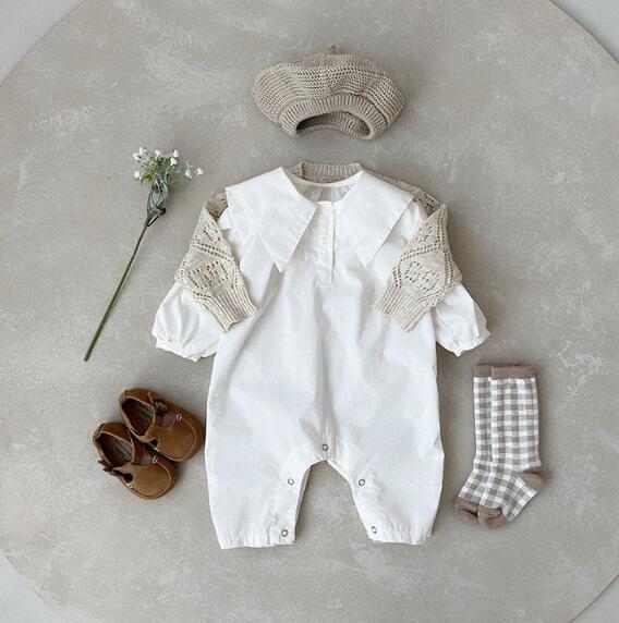 上品な襟付きデザインのベビーロンパースです。