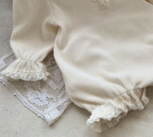 上品なレース襟が印象的なベビードレス風ロンパースです。 柔らかなポリエステル65%・綿35%の混紡素材で赤ちゃんの肌に優しく、 ホワイトとクリームの2色展開でフォーマルシーンにも最適。 サイズは66~90センチまで対応しています。