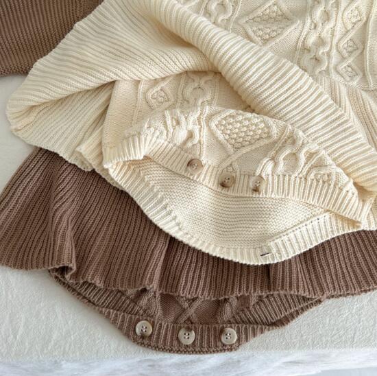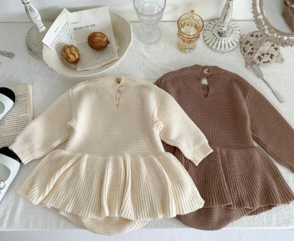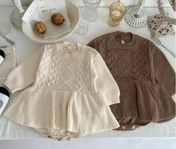 上品なケーブル編みが美しいベビードレス風のニットロンパースです。 ふんわりとしたスカート部分が愛らしく、特別な日のベビードレスとしても普段使いとしても活躍します。 柔らかなニット素材で赤ちゃんの肌に優しく、66センチから100センチまで対応しています。