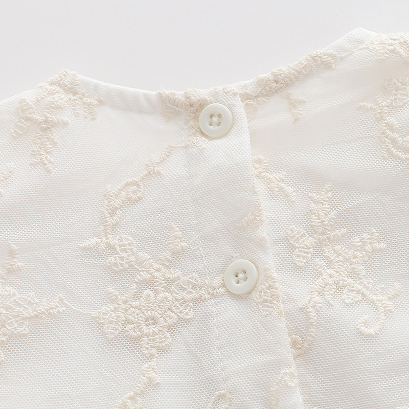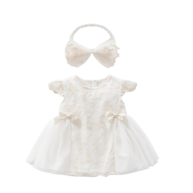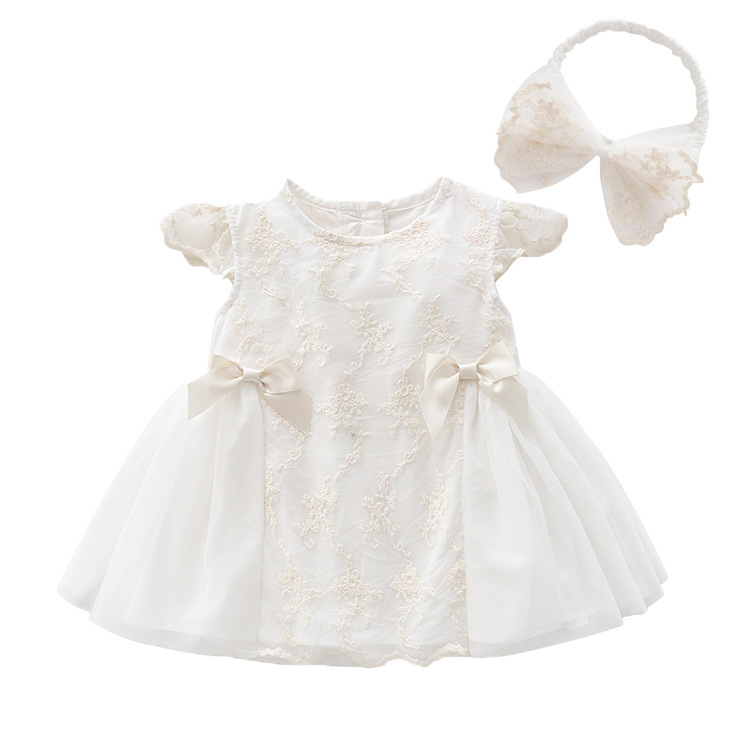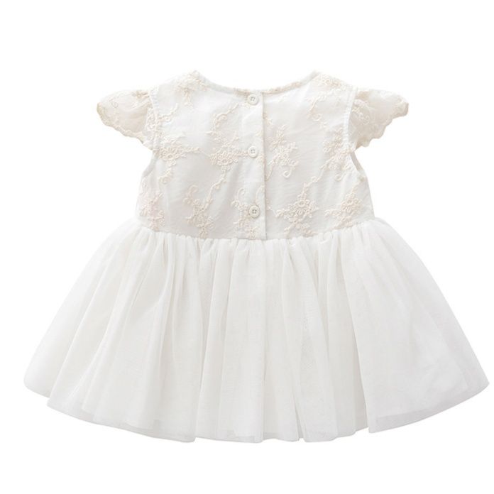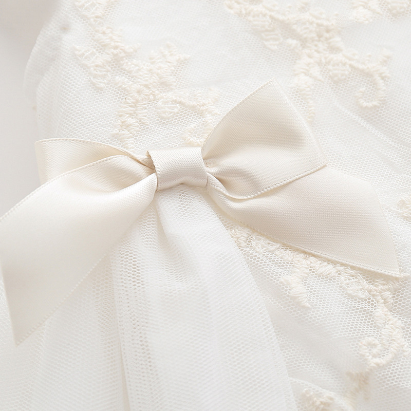 ふんわりと広がるチュールスカートと、可愛らしいフリル袖が赤ちゃんの愛らしさを引き立てます。