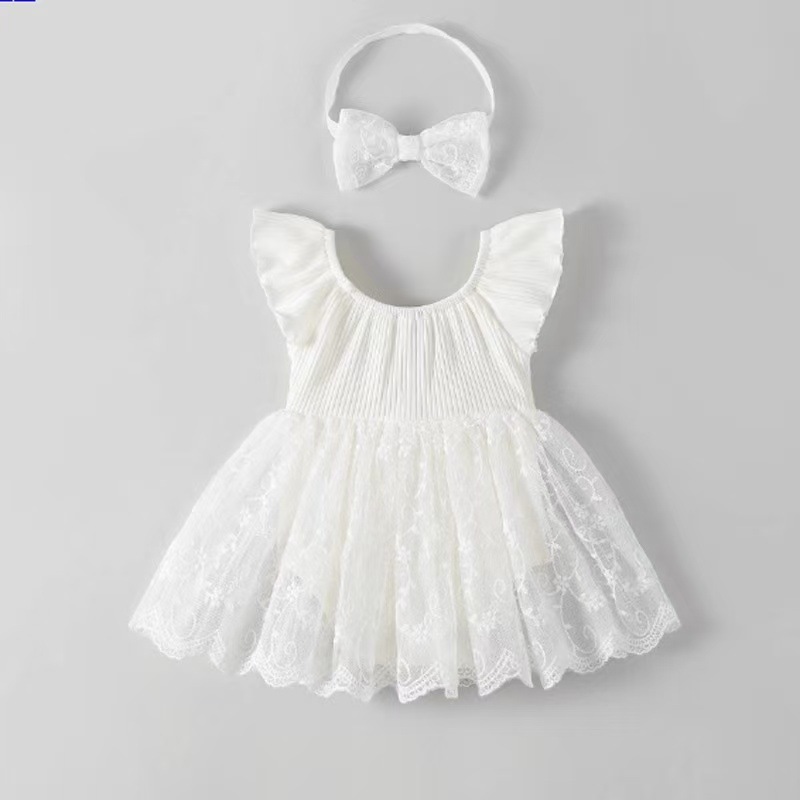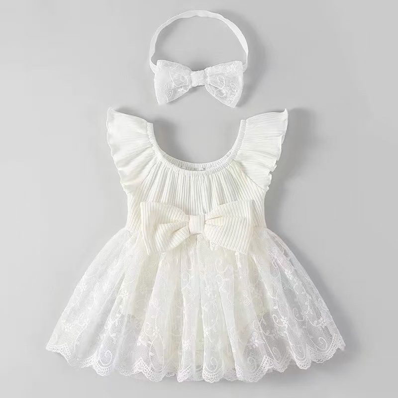 お揃いのレースリボンヘアバンド付きで、このドレス一着で華やかなコーディネートが完成します。