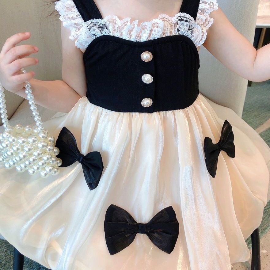 華やかな結婚式にぴったりなベビードレスです。 ベルベット風の胸元と繊細なレース袖が上品な雰囲気を演出します。 ふんわりと広がるバルーンスカートには大きなリボンモチーフを配し、プリンセスのような愛らしさを実現しました。 胸元のパールボタンがアクセントになり、特別な日の装いにふさわしい一着です。 結婚式やお披露目などのフォーマルシーンで大活躍します。